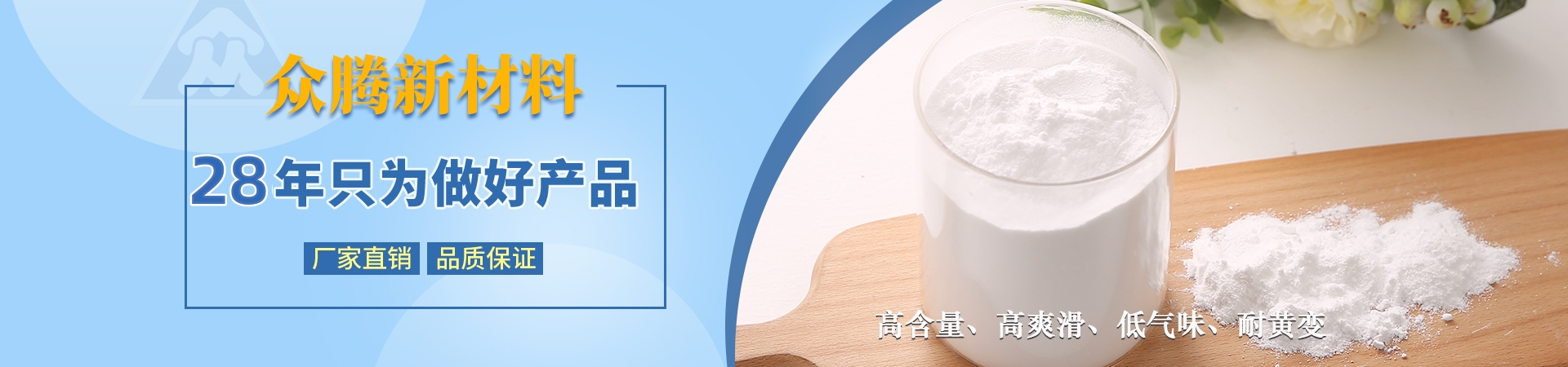 南通海門(mén)眾騰新材料科技有限公司與德國(guó)ZOTN公司合作,始建于1995年,地處長(zhǎng)江三角洲與國(guó)際大都市上海隔江相望,座落于江蘇省南通市海門(mén)區(qū)。公司固定資產(chǎn)2000萬(wàn)元,具備先進(jìn)、齊全的科研設(shè)施,擁有一批已積累多年開(kāi)發(fā)、技術(shù)應(yīng)用經(jīng)驗(yàn)的專(zhuān)業(yè)技術(shù)人員,同類(lèi)產(chǎn)品采用目前國(guó)際先進(jìn)的自動(dòng)控制裝置。產(chǎn)品主要有芥酸酰胺、硬脂基芥酸酰胺、油酸酰胺、硬脂酸酰胺、塑料光亮劑、塑料抗靜電劑、EBS、EBO、開(kāi)口劑等,廣泛應(yīng)用于生物降解材料、母料、塑料、吹膜、PE粉末涂料、 油墨等行業(yè),年銷(xiāo)售量3000噸,出口量占60%。公司產(chǎn)品均已通過(guò)SGS綠色環(huán)保檢測(cè),符合歐盟ROHS環(huán)保指令,并達(dá)食品、醫(yī)藥級(jí)要求。忠誠(chéng)合作,和諧創(chuàng)造!讓我們攜手并進(jìn),共創(chuàng)美好明天!